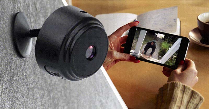A purpose-built wireless mini security camera for fast, flexible indoor coverage. It pairs a compact 1080p sensor and infrared night vision with motion detection alerts, ~150° wide-angle viewing, a rechargeable battery, and local micro-SD storage (so you can skip subscriptions). The magnetic base and peel-and-stick mount make placement painless; the compact body travels easily between rooms—or cities.